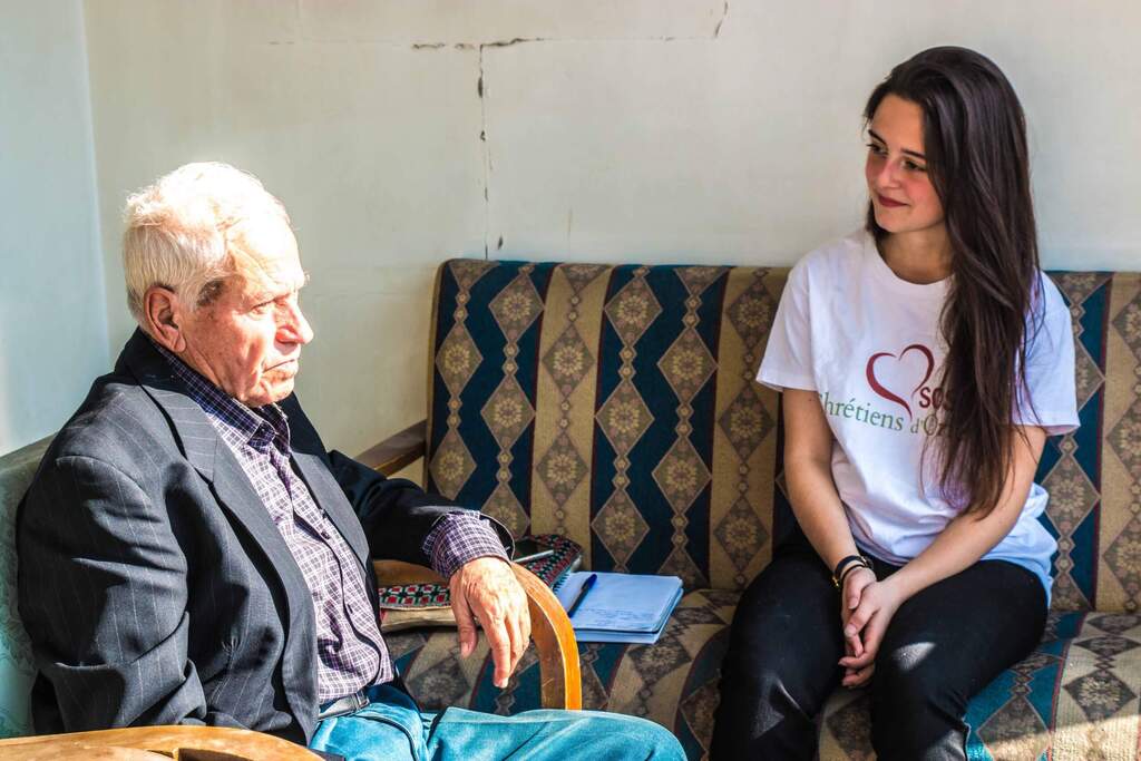 Cette activité permet d’apporter une aide matérielle aux familles que nous allons visiter. De nombreuses familles ont dû quitter leur maison en n’emportant que quelques affaires pendant la guerre et ont donc besoin d’une aide première d’urgence. Nous allons donc visiter une première fois les familles pour répondre au mieux à leurs besoins de nourritures, produits d’hygiène, vêtements, chaussures, matelas, couvertures, etc. Nous procédons ensuite à une deuxième visite où nous donnons ce dont la famille a besoin.